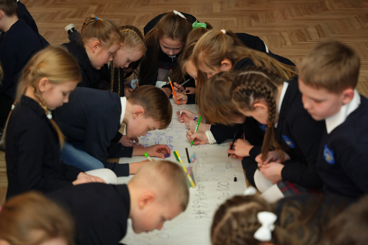 Pirmokų tikslas – per įvairias integruotas veiklas sujungti lietuvių kalbos, matematikos, muzikos ir šokio elementus. Taip mokiniai bendravo, bendradarbiavo, pažino save ir kitus, o meninės raiškos pagalba išreiškė savo patirtis ir jausmus.