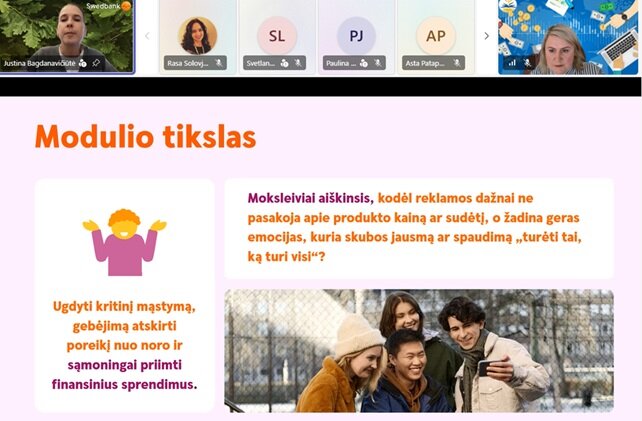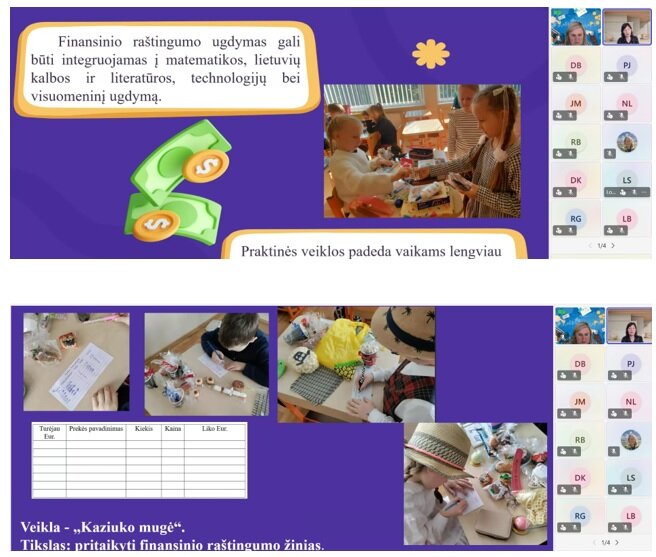 Džiugino 3–4 klasių mokiniai, kurie parengė ir drąsiai skaitė pranešimus aktualiomis finansinio raštingumo temomis. Jaunieji pranešėjai savo įžvalgomis įrodė, kad net ir pradinėse klasėse mokiniai geba analizuoti savo išlaidas bei priimti atsakingus finansinius sprendimus.