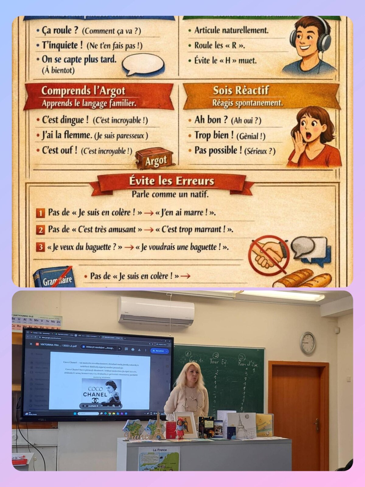 Ar gali pamokos virsti degustacijomis ar protmūšiais, kūrybinėmis dirbtuvėmis ar asmeninių kokteilių ,,instagramiškomis" reklamomis, muzikinėmis perklausomis, diskusijomis, konkursais? Taip, mokantis prancūzų kalbos ir ypač tradiciškai minint kovą - frankofonijos mėnesį pamokos tampa mažytėmis šventėmis.