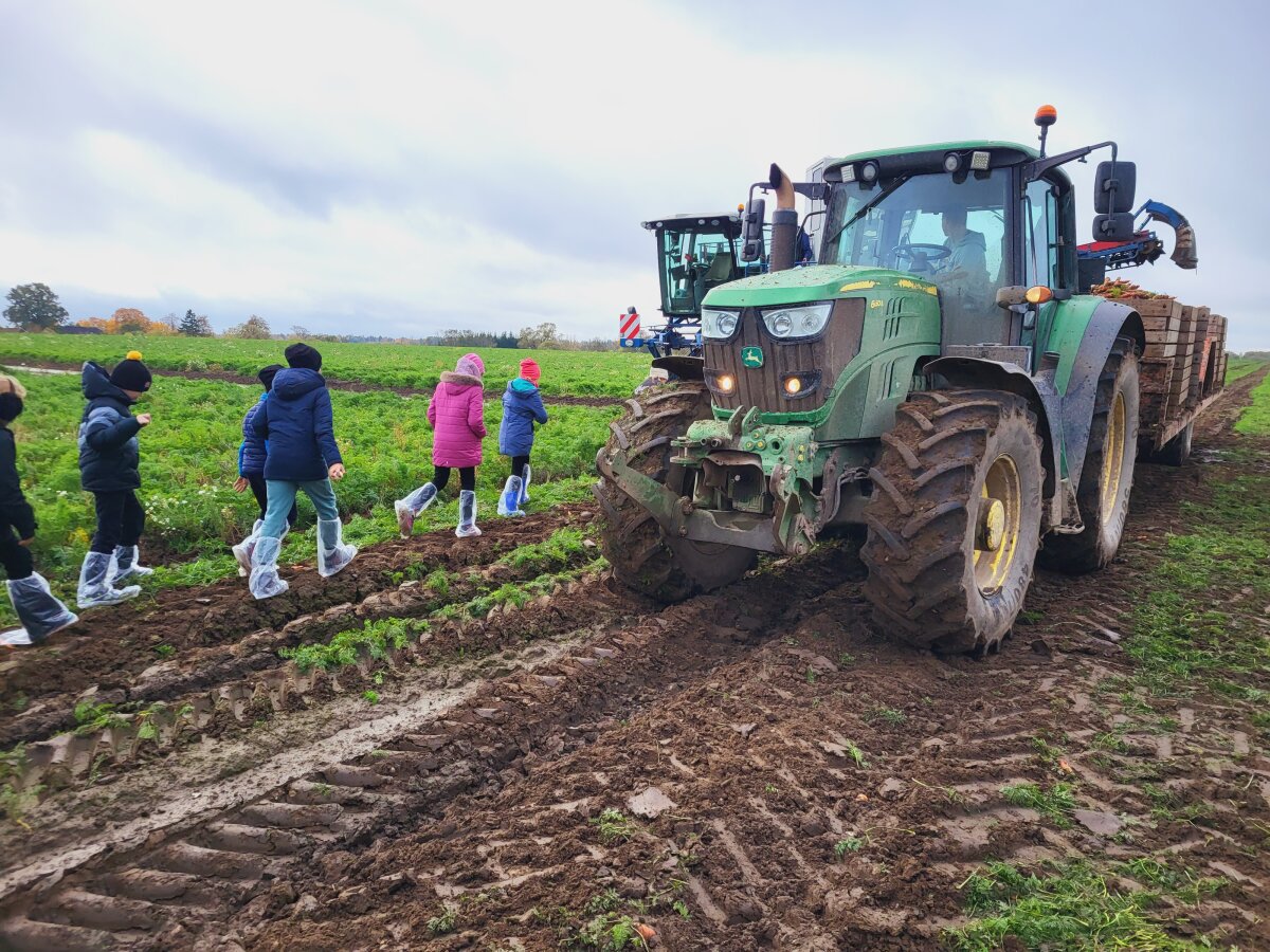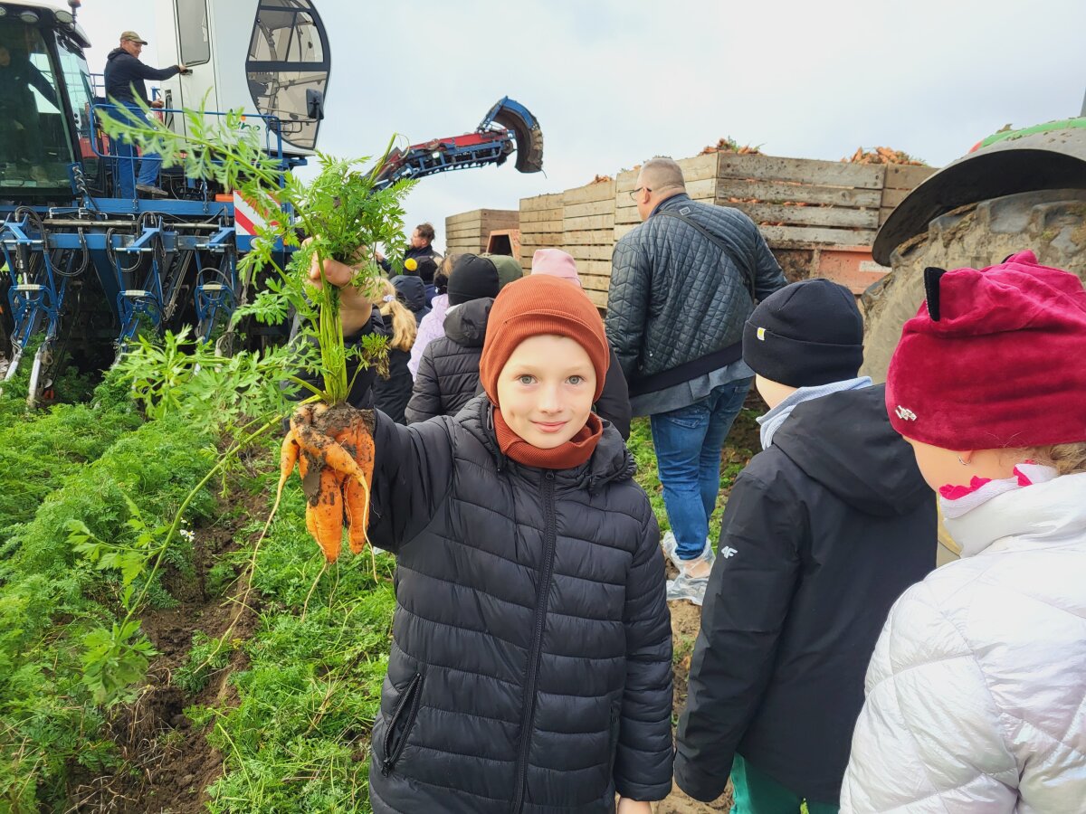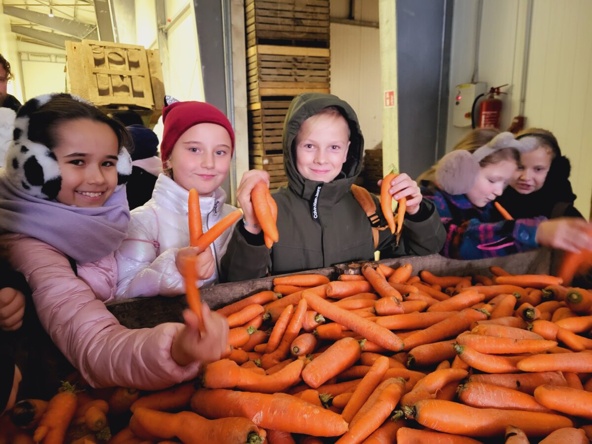 Po veiklų trečiokai išvyko į edukacinę kelionę „Sveikos daržovės – nuo lauko iki stalo“, kuri vyko Lino Šateikos daržininkystės ūkyje Daugėlaičių kaime. Mokiniai stebėjo daržovių derliaus nuėmimo procesą, matė, kaip morkos plaunamos, rūšiuojamos ir sandėliuojamos. Tai buvo ne tik pažintis su ūkininko darbu, bet ir puiki galimybė suprasti, kaip daržovės pasiekia mūsų stalą.